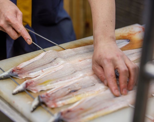 表面だけでなく、中までふっくら仕上がるよう厳選した備長炭を使用しています。1000度を超える強い火力で生から一気に焼き上げます。表面を焼いていく備長炭の火力と、中まで火を通していく遠赤外線の効果で、ギュッと旨味を閉じ込めながらパリッ・サクッとした心地よい食感に仕上げていきます。