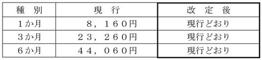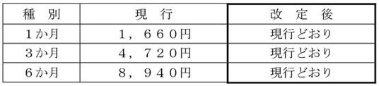 ※通勤・通学ともに、現行運賃からの変更はありません。