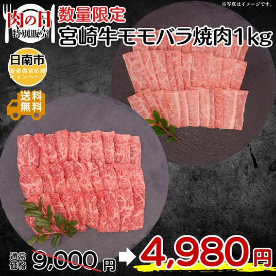 【今だけ送料無料】〈日南市産〉宮崎牛モモ・バラ焼肉計1kgネット価格9,000円