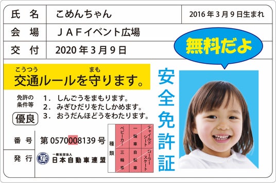 イベント当日は、「シートベルトコンビンサー」での時速5kmの疑似衝突体験や交通安全のクイズに答えてもらえる、免許証そっくりのカード「子ども安全免許証」を作成することができます。