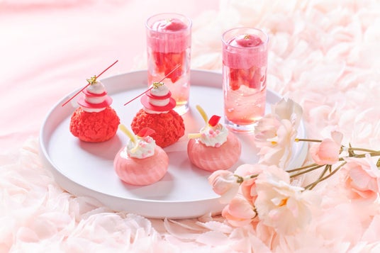 他にも、目でも舌でもお花見気分を楽しめる、スペシャルデザートとドリンクとして、桜のムースに濃厚な桜クリームを絞ったモンブランとパンケーキでサンドして洋風にアレンジした桜餅を添えたスペシャルデザート、いちごと桜色のスペシャルドリンク2種をオプションで提供します。