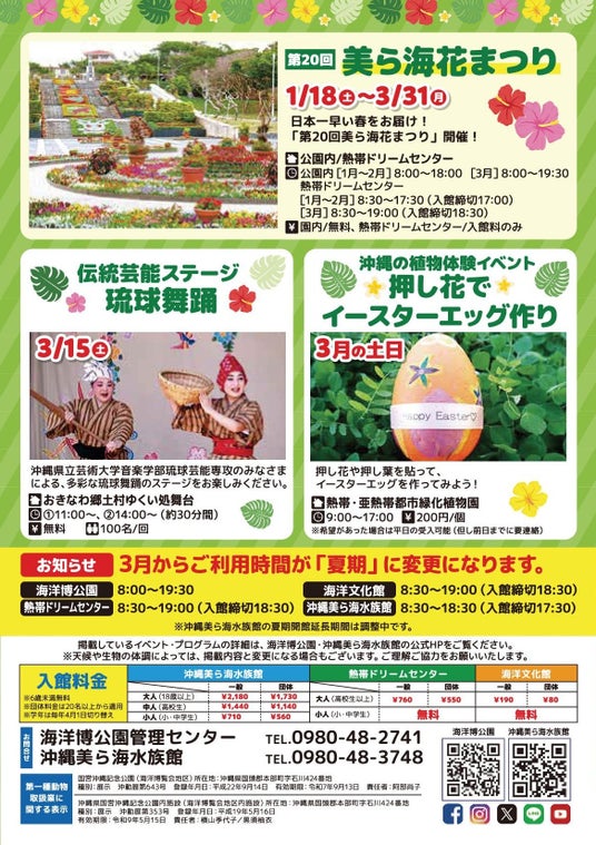海洋博公園では、施設の魅力やイベント情報をお届けする「美ら海通信3月号」を発行しました!