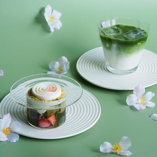 ●「庭園パフェ - 春の洲浜 - 抹茶ラテセット」 (ICE / HOT)¥2,310(税込)