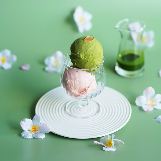 濃緑の抹茶をかけて、完成する混ざり合う味と香りをご堪能下さい。