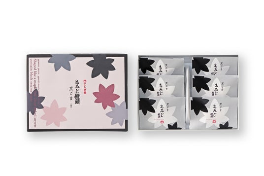 「黒ごまもみじ」は、香ばしい黒ごまの風味が楽しめる新しいもみじ饅頭です。とろりとしたなめらかな黒ごまあんに、プチプチとした食感が楽しい炒りごまを練り込み、芳醇な香りの黒ごま風味のカステラ生地で包み込みました。