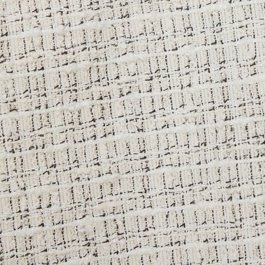 - リリヤーン編みにヨコ糸をプラスし、その糸をカットして織り上げることで糸端がフワフワと出てファンシーツイードの表情をつくっています。