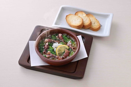 富山県産ほたるいかと菜の花の春爛漫アヒージョ春の訪れを告げる”ほたるいか”と、鮮やかな緑色の”菜の花”。見た目も味わいも春らしさ満載の一品です。オイルにバゲットを浸して食べれば、至福のひととき。