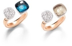 アシンメトリーなデザインは、クラシックサイズのカラージェムストーンの横に「ヌード プチ」のダイヤモンドパヴェを配し、ポメラート独自のスタイルに現代的なひねりを加えています。