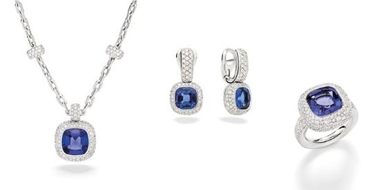「ヌード」ハイジュエリーネックレス、イヤリング、リング:ホワイトゴールド、タンザナイト、ダイヤモンド