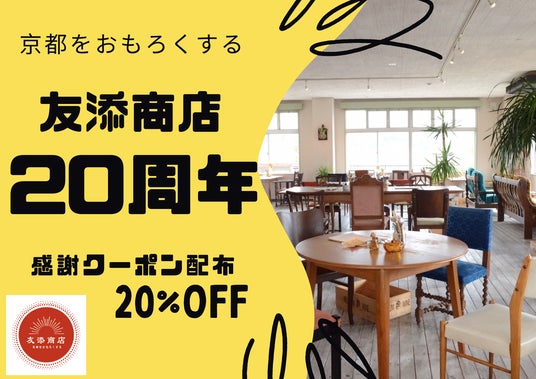 「京都をおもろくする」を理念に、カフェやデリカテッセン、居酒屋など現在4店舗の異業種展開を行っている株式会社友添商店(本社:京都市下京区、代表取締役:友添敏之)は、2025年3月1日に創業20周年を迎えました。各店舗をご利用いただいているお客さまに感謝をお伝えすると共に、運営する異業種店を知っていただく機会として、20周年にちなみ、他店をご利用時に20%オフとなるクーポンを2025年3月3日(月)~2025年3月31日(月)の期間限定で配布いたします。
