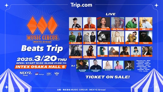 株式会社MUSIC CIRCUS(東京都渋谷区)は、2025年3月20日(木・祝)にインテックス大阪5号館で開催される音楽フェスティバル「MUSIC CIRCUS -Beats Trip-」の第4弾出演アーティストを発表いたします。