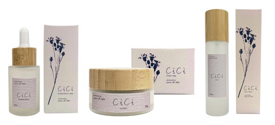 現在、「cici」のラインナップには、化粧水、美容液、美容クリームといったスキンケアに必要なアイテムを展開しております。。今後も新商品を展開予定で、ますます多くの人々に愛されるブランドを目指しています。