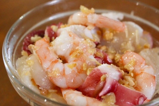 【海鮮トッピング】にサクサク塩糀レモンカシューナッツを加えて和える。