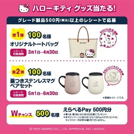 ■ ハローキティ のオリジナルグッズが当たる!「グレード × ハローキティ キャンペーン」が開始