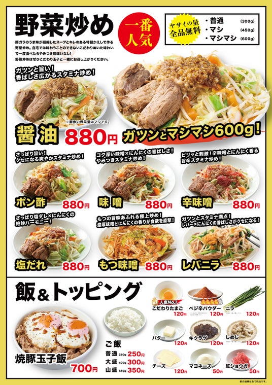 メニュー【増量無料】野菜・ニンニク・アブラ