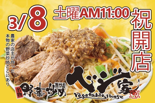 埼玉県初上陸!野菜炒め専門店『ベジ家(ベジヤ)』埼玉県川口市に3月8日(土)オープン!