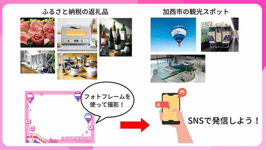 従来の一方通行のふるさと納税の関係を超え、寄附者が「デジタル加西市観光課員」になり、寄附者は加西市の魅力を発信、加西市は寄附者の活動を応援するという双方向の関係性を構築します。このプロジェクトでは、寄附者に「デジタル加西市観光課員」としての証明NFTと専用カメラフレームを提供し、加西市との新しい関係を築いていただきます。