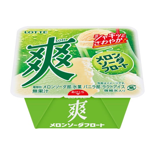 株式会社ロッテは3月10日(月)に、微細氷入りでシャリッとした食感とさっぱりとした後味が楽しめる 「爽」ブランドから、『爽 メロンソーダフロート』を2年ぶりに発売いたします。しっかり甘いバニラと爽やかなメロンソーダが絡み合ったメリハリのきいた仕立てで、懐かしのメロンソーダフロートの味わいを目指しました。微細氷サイズはバニラ部は小さく、メロンソーダ部は大きくすることで氷の食感と冷たさの違いを楽しむことができる品質にブラッシュアップ!この春の爽の新作をぜひご賞味ください。