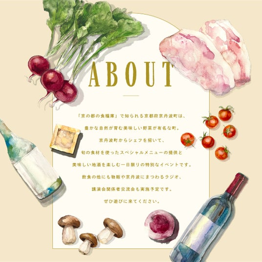 「京の都の食糧庫」と呼ばれる京丹波町の豊かな食材や地酒、そして地域の人々が育んできた文化やストーリーにも触れることができる貴重な機会です。町制施行20周年の節目を迎えた京丹波の魅力を広く発信する本イベントに、ぜひご参加ください。皆様のご来場を心よりお待ちしております。