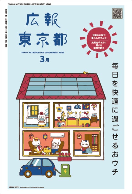 東京都では、都政や都民生活に必要な情報を伝えるため、広報紙「広報東京都」を毎月1日に発行しています。3月号は、「住まいの環境性能」がテーマ。東京都が運営している特設サイト「知って役立つ!おウチの燃費と快適性」のコンテンツでコラボしているハローキティが、快適なお家で暮らすための方法などをご紹介します。夏は涼しく冬は暖かい快適なお家について、これを機にハローキティと一緒に考えてみませんか。