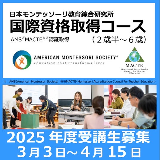 日本で取れるモンテッソーリ教育の国際資格 2025年度受講生募集開始! 国際基準(AMS)を満たす実践力が身につくコース 日本語で学べます