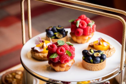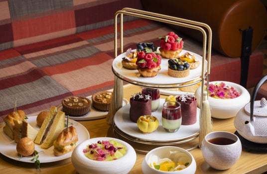 “Colors of Spring” をコンセプトに、春の色彩と味覚を楽しむアフタヌーンティーセット。山盛りのラズベリーで桜クリームを包んだ柚子パウンドケーキ、春の陽光をイメージしたマスカルポーネムース マンゴーゼリー、ブルーベリー&ピスタチオのタルト、メロンのカルパッチョなど、カラフルな春の味わいが満載です。爽やかに山葵が香る卵サンドやライスコロッケ、フェンネルのサラダなどこだわりのセイボリーも。老舗「小川珈琲」のオリジナルブレンドや宇治の抹茶など厳選したドリンクと一緒に、春の息吹を感じる優雅なティータイムを。