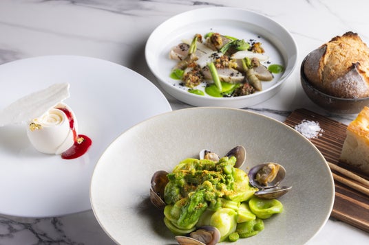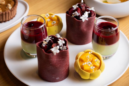 オールデイダイニング「テオリ」のビュッフェには、春色のミモザサラダやプロヴァンス風タルト、ファヒータなどカラフルなメニューが勢ぞろい。ライブキッチンではローストビーフや出来立てのパスタなどを目の前でご用意します。またレストラン「セブン・エンバーズ」では、春の地中海をイメージしたコースを提供。春野菜と楽しむ京鴨やラム、色鮮やかなオレキエッテなどが登場します。ロビーラウンジ&バー「ラティスラウンジ」では4月7日(月)からは春色を詰め込んだ「アフタヌーンティーセット“Colors”」を販売。メロンのカルパッチョをはじめマンゴーとマスカルポーネのムース、ラズベリーやチェリーを用いたケーキのほか、わさびマヨネーズの卵サンドや海苔のライスコロッケなど春の風味を感じるセイボリーも登場。