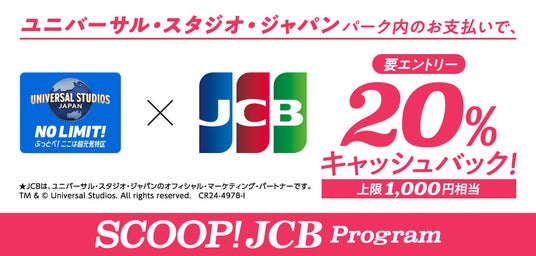 株式会社ジェーシービー(本社:東京都港区、代表取締役兼執行役員社長:二重 孝好、以下:JCB)は、2025年3月15日(土)から4月30日(水)まで、「ユニバーサル・スタジオ・ジャパンでJCBを利用すると20%キャッシュバック!」キャンペーンを実施します。