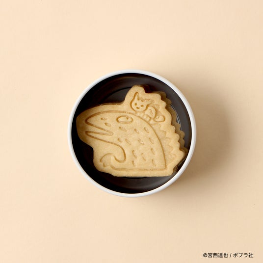 缶のデザインのみならず、絵本に登場する「ティラノサウルスとアンキロサウルスのあかちゃん」をモチーフにしたオリジナルクッキーを詰めた、絵本の世界観をお楽しみいただけるクッキー缶です。