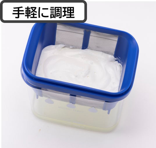水切りにバネの力を使うことで約1時間でグリークヨーグルトが作れます。また、時間をかけることでまるでチーズのような食感にもできるので、お好みに合わせてお楽しみいただけます。