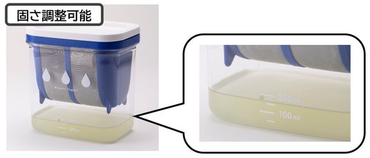 メモリ付き透明容器なので、水切り量がひと目でわかり、お好みの固さに調節可能です。