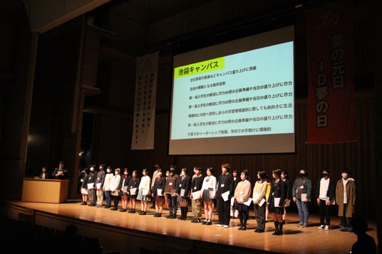「ID夢の日」では、夢を持つことの大切さを確認する場として、年に一度実施している学校行事です。代表生徒による発表や、夢実現に向けて努力した生徒の表彰、理事長講座などを実施します。