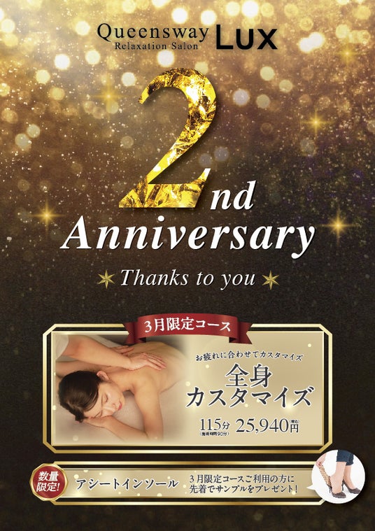 【2nd Anniversary!】英国式リフレクソロジーサロンQueenswayLUXがオープン2周年を記念してお得な施術コースを提供!
