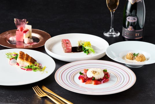 ディナーコースでは、牛ロースや桜鯛、トリュフのアランチーニなど、お祝いの日にふさわしい食材を贅沢に使用しています。ランチコースは、爽やかな春の訪れを感じられる前菜の盛り合わせや、新玉ねぎのスープ、鰆のポワレなどをご用意しました。