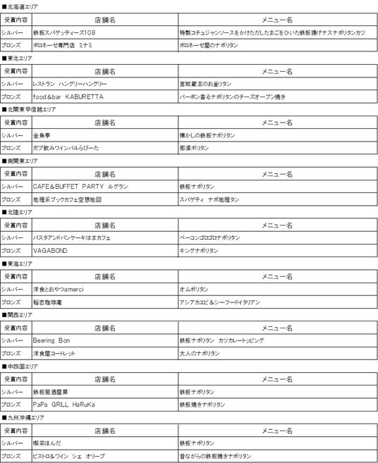 ■王道ナポリタンリーグ シルバー・ブロンズ受賞店舗