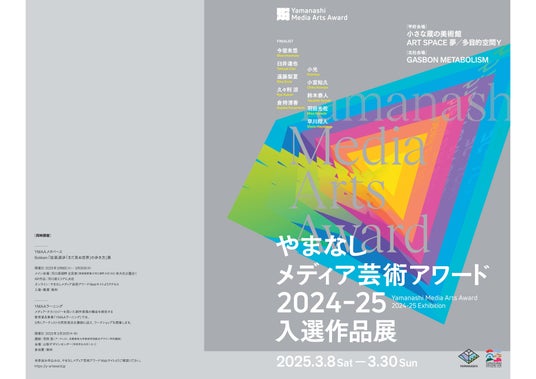 山梨県(知事:長崎幸太郎)では、3月8日(土)~30日(日)まで、「YAMANASHI MEDIA ART PROJECT」を開催します。県内各地を舞台に、次世代を担うアーティスト達がテクノロジーを駆使しながらアート作品を通じて、山梨から未来へ大胆な提案を投げかけます。