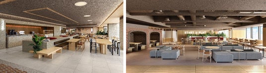 41階の「YAESU SKY LOUNGE」に加え、13階のウェルビーイングフロア「Wab.(ワボ)」では、ワーカーの皆様の生き生きした生活をサポートする食堂・カフェ&バー、ビュッフェ等もご利用いただくことができ、ビル全体としても唯一無二の豊かな空間を提供します。