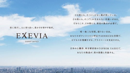 東京建物グループのエキスパートオフィス株式会社(東京都千代田区、代表取締役社長:齋藤 巌、以下「エキスパートオフィス」)は、フレキシブルオフィス・エキスパートオフィスの最上位ブランド「EXEVIA(エグゼビア)」を立ち上げ、シリーズ展開することを決定しましたので、お知らせします。第1号店は2026年3月に、東京駅八重洲口前で建設中の大規模複合施設「TOFROM YAESU TOWER(トフロム ヤエス タワー)」内に「EXEVIA TOKYO YAESU(以下「本施設」)」として開業予定です。