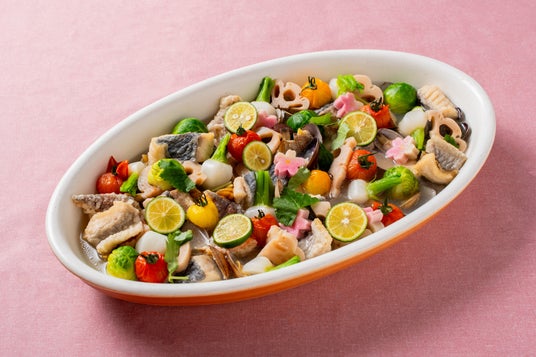 「青森直送魚の桜焼き」直営農場「東北牧場」から届く桜と、青森から直送される旬魚を使い、青森の春をイメージしました。