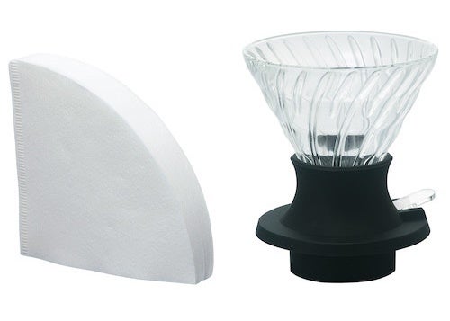 コーヒー粉を一度お湯に浸漬してから抽出するドリッパーと専用ペーパーフィルター40枚のセット。スイッチを押してドリップするので、どなたにでも均一な抽出が可能です。
