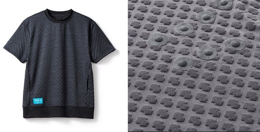 コラントッテのロゴマークをあしらった凹凸生地はやさしい肌触りで、吸湿速乾、通気性に優れます。動きを妨げないリラックスシルエットと軽量生地は快適な着心地です。フェライト永久磁石10個をコラントッテ独自のN極S極交互配列で配置。磁力が装着部位の血行を改善、筋肉のコリの緩和を促します。