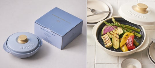 ライフスタイルブランド「BRUNO」がデザイン監修した初のコラボレーション商品。電子レンジの調理でまるで直火のような 焼き目がつけられ、調理後そのまま食器の代わりとして食卓へ出せるので温かい状態で料理を楽しめます。