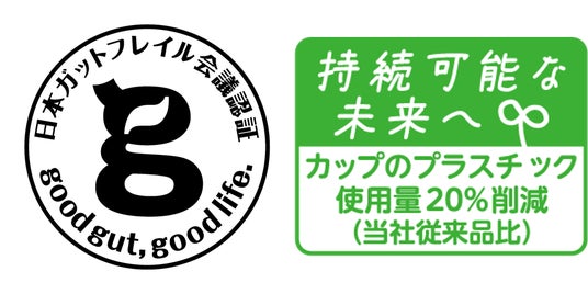 また、「まるごとSOYカスピ海ヨーグルト」の容器についても、日本ガットフレイル会議の認証マークの追加と共に、プラスチック使用量を20%削減※した環境配慮型容器への切り替えを2025年3月より順次行ってまいります。