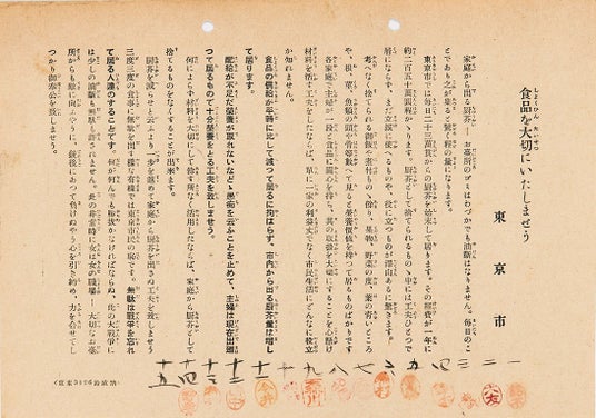 隣組回覧板(京橋区湊町)「食品を大切にいたしませう」(東京市/発行 昭和時代前期)
