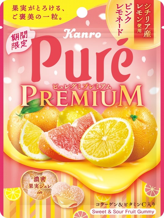 濃密ジュレが入ったご褒美シリーズに、春の新味が仲間入り カンロ「ピュレグミプレミアム シチリア産レモンのピンクレモネード」発売