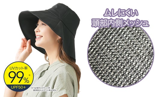 UVカット率99%!接触冷感と内側メッシュでひんやり快適!大きなつばでしっかりUV対策!