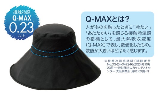 裏縁はQ-MAX0.23以上の冷感生地を使用で涼やかな被り心地。