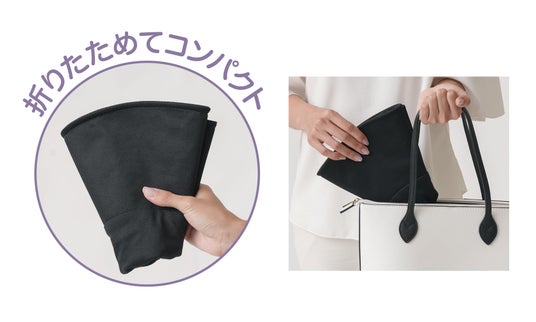 使わない時は、小さく折りたたんでバッグにすっぽり収納できるので、外出時にピッタリ!