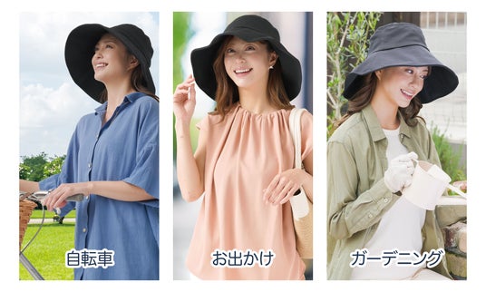 ガーデニングやちょっとした外出時に・・・「UV&クール折りたためる日よけ帽子」があればいろいろなシーンで紫外線対策できます。