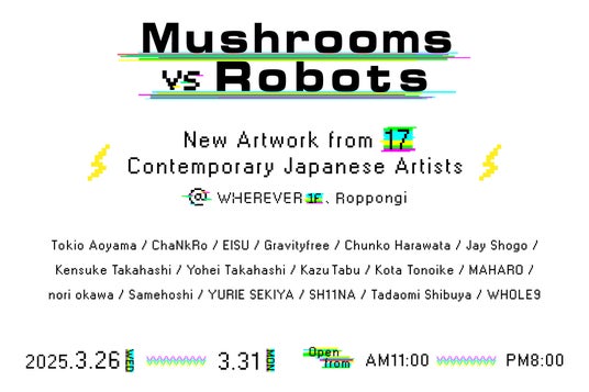東京、日本 - TokyoDex株式会社は、2025年3月26日から31日まで、WHEREVER 1Fにて、グループ展「Mushrooms vs Robots」(MvR)を開催します。本展では、日本のアーティスト17名が多様なスタイルで参加し、自然の叡智と止まることのない技術革新の進歩との間にあるパラドックスを探求します。